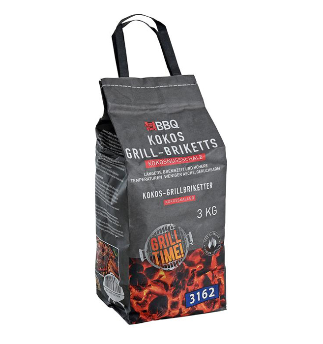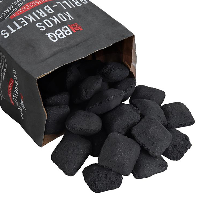 De briketten zijn gemaakt van 100% natuurlijke kokosresten en daardoor milieuvriendelijker en ideaal voor elke barbecue.