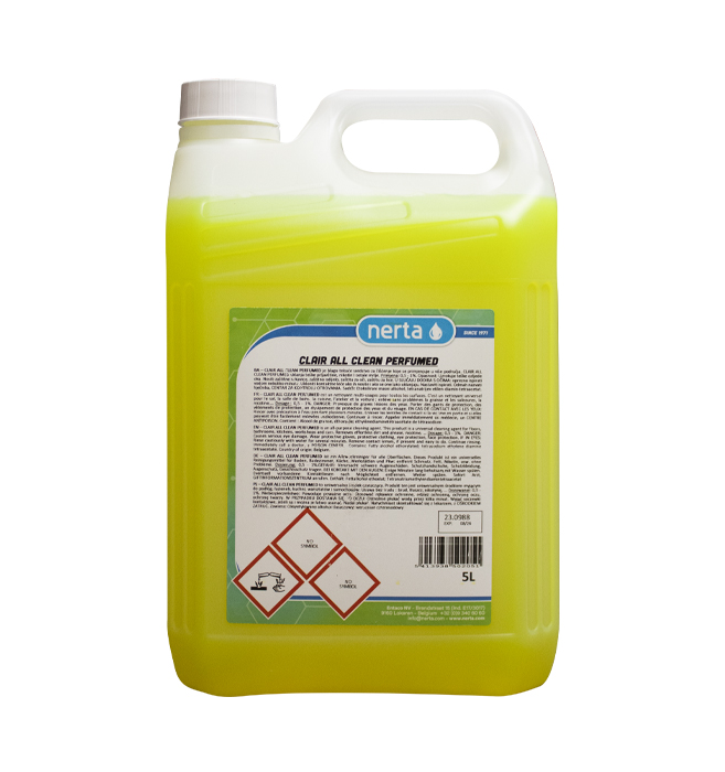 Nerta Clair all clean is een allesreiniger voor alle afwasbare oppervlakken zoals vloeren, badkamers, keukens, werkplekken en auto’s.