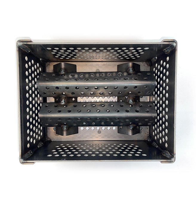 De pelletkorf is gemakkelijk te plaatsen in uw haard en wordt gratis geleverd in Nederland.