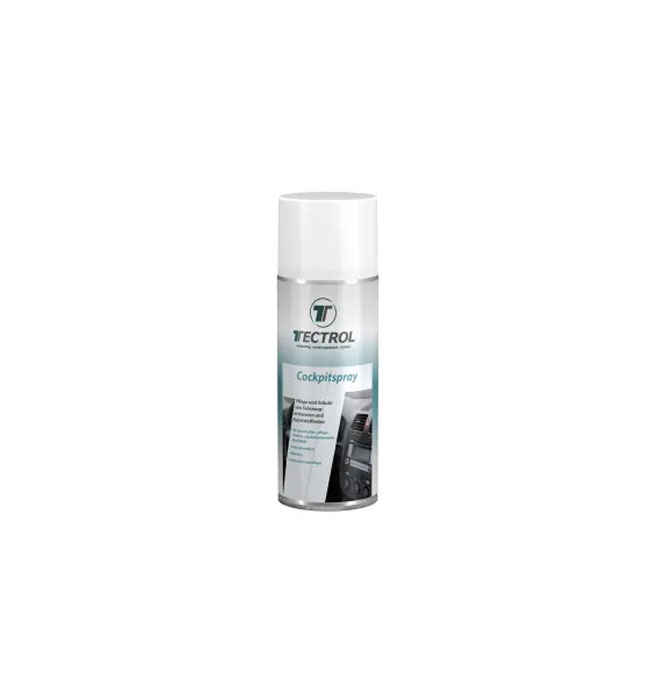 TECTROL COCKPITSPRAY zorgt voor een langdurige verzorging voor het interieur van het voertuig, reinigt, geeft glans en conserveert kunststof oppervlakken, vinyldoppen, rubberen matten, armaturen, onderdelen van kunststof, hout en leder (geen stoffen onderdelen).
